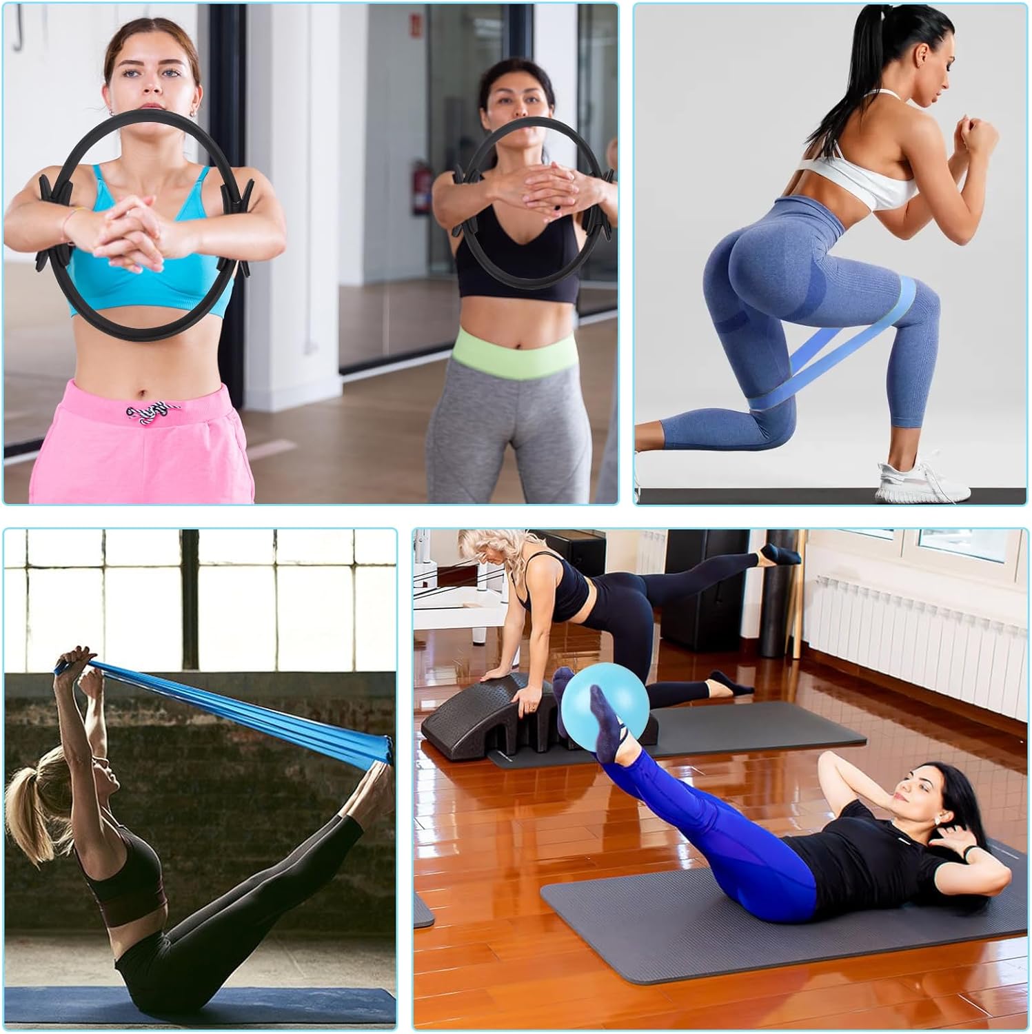 Features: The Pilates Ring Set is ideal for fitness, toning, and rehabilitation and is appropriate for people of all ages and fitness levels. Each resistance band is clearly labeled by strength, allowing you to easily personalize your exercises and measure your progress. The small design make it easy to use at home or on the road. Whether you’re working on deep muscle regions, recovering from an injury, or just remaining active, this set offers a dependable and comfortable option for your fitness journey. Multi-Purpose Tools for Every Workout Style: Whether you’re into pilates, yoga, barre, stretching, or resistance circuit training, this pilates ring circle set offers a variety of tools to customize your sessions. Easily shift from light warm-ups to targeted strength training, making it perfect for both calming routines and muscle-building workouts. Pilates ring and ball set of 15 pieces. Package includes: 1 x Pilates ring 1 x Yoga balls 2 x fascia ball 1 x 8 shape resistance bands 1 x D-ring stretch strap 1 x Elastic bands 5 x Resistance bands 1 x Headbands 5 x Rubber bands 1 x Inflator pumps Notes: Manual measurement, please allow slight errors on size. The color may exist a slight difference due to different screen displays. Please use our sports equipment scientifically under safe conditions, and note that improper use may cause the risk of injury. Pregnant women please consider carefully before use.