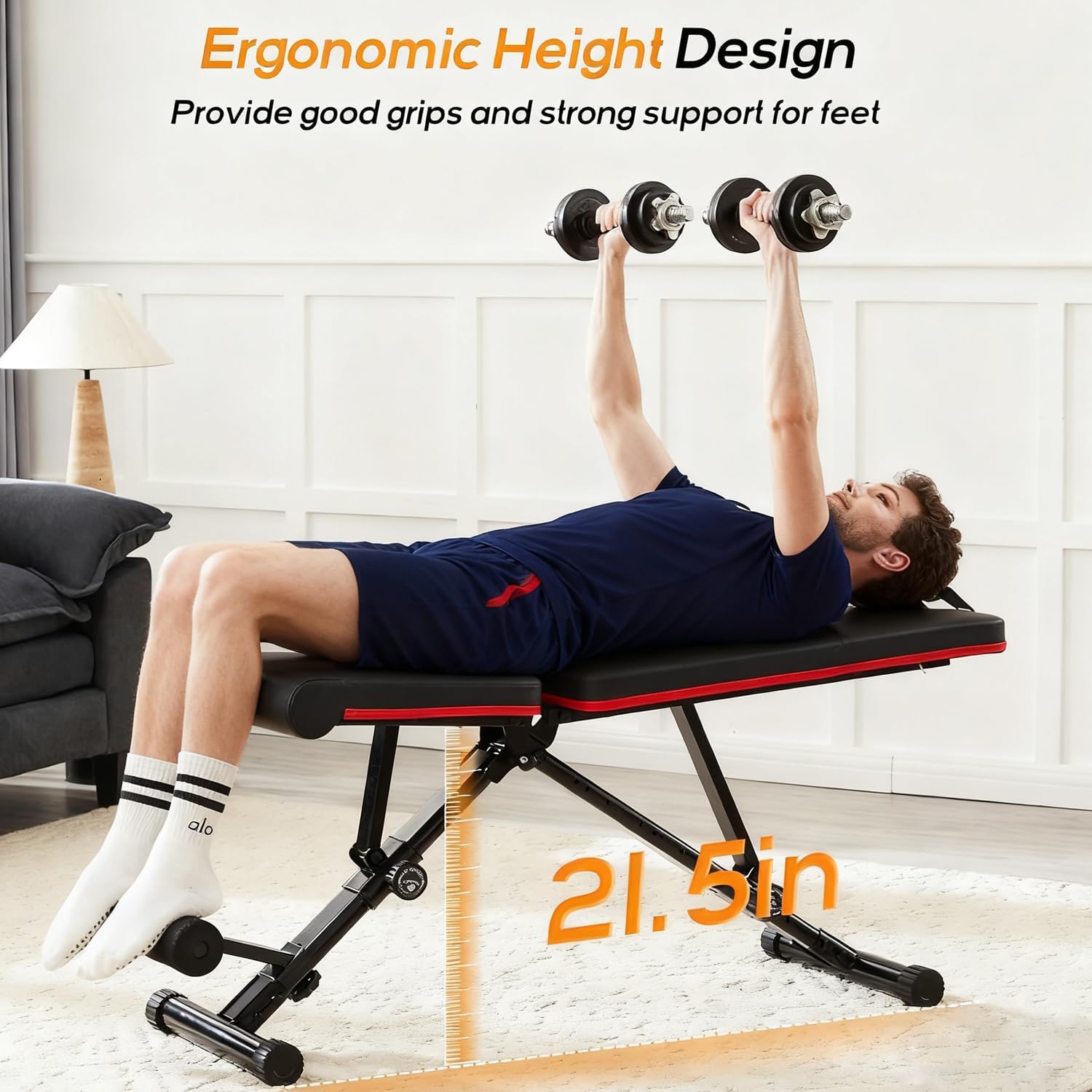 【Optimal Ergonomic Height】With a height of 21.5 inches, this weight bench is designed to promote proper form and alignment during exercises. Its ergonomic height ensures that users of all sizes can easily get on and off the bench, making it a practical addition to any home gym setup. This thoughtful design enhances both usability and safety, allowing you to focus on your fitness goals.