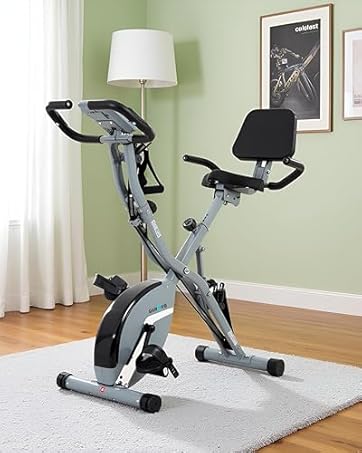【FOLDABLE EXERCISE BIKE】 16-8-2-3: 16 Levels adjustable magnetic resistance. 8 Seat height adjustments. 2 Seat angle adjustments. 3 Workout bike posture adjustments: upright, recline, and folding. Exercise equipment for home allows you to exercise more freely and comfortably, and burn your calories as much as you like.