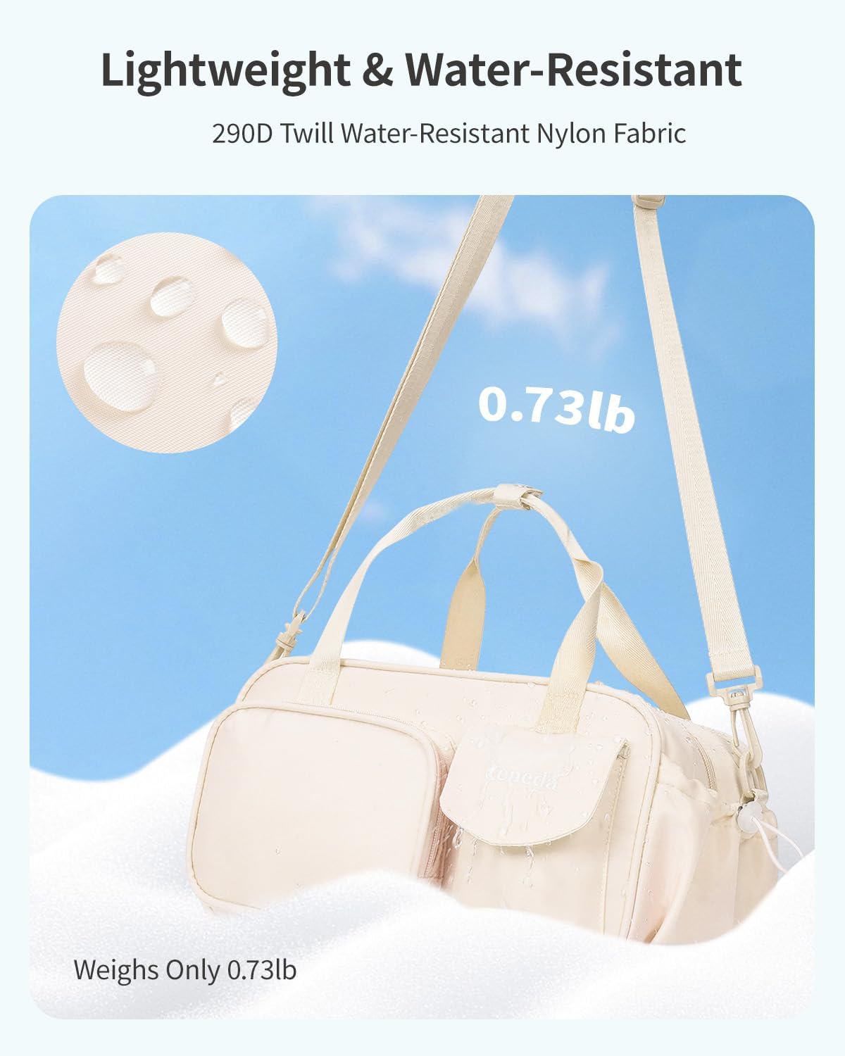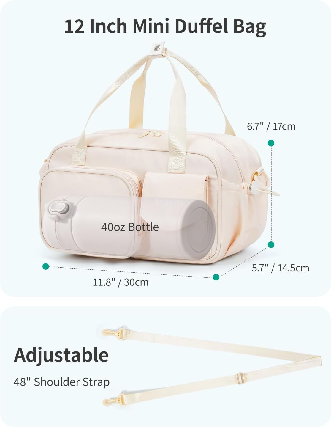 I bought the Ceneda 12-inch Mini Gym Bag for quick gym sessions, yoga classes, and daily errands ;and it has quickly become my go-to bag. It’s the perfect size for carrying essentials without being bulky, and the design is both functional and stylish.One of the best features is the wet pocket, which is ideal for separating damp clothes, a towel, or even a water bottle from the rest of your items. The multiple compartments help keep everything organized ; I can easily fit my gym clothes, deodorant, keys, phone, and even a small snack without it feeling stuffed.It’s super lightweight, and the water-resistant material gives me peace of mind if I get caught in the rain or throw it on a locker room floor. The zippers are smooth, and the strap is comfortable whether I’m carrying it by hand or over the shoulder.This bag is great not just for the gym but also for travel, quick weekend outings, or as a backup tote in your car. If you’re looking for a compact, versatile, and affordable gym bag, this one definitely delivers. Highly recommend for anyone who’s always on the go!