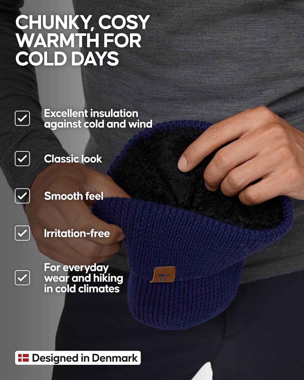 DANISH ENDURANCE Merino Wool Beanie for Men & Women, Fleece Lined Hat, Soft, Stretchy, Fisherman Beanie, Warm Wool Hat