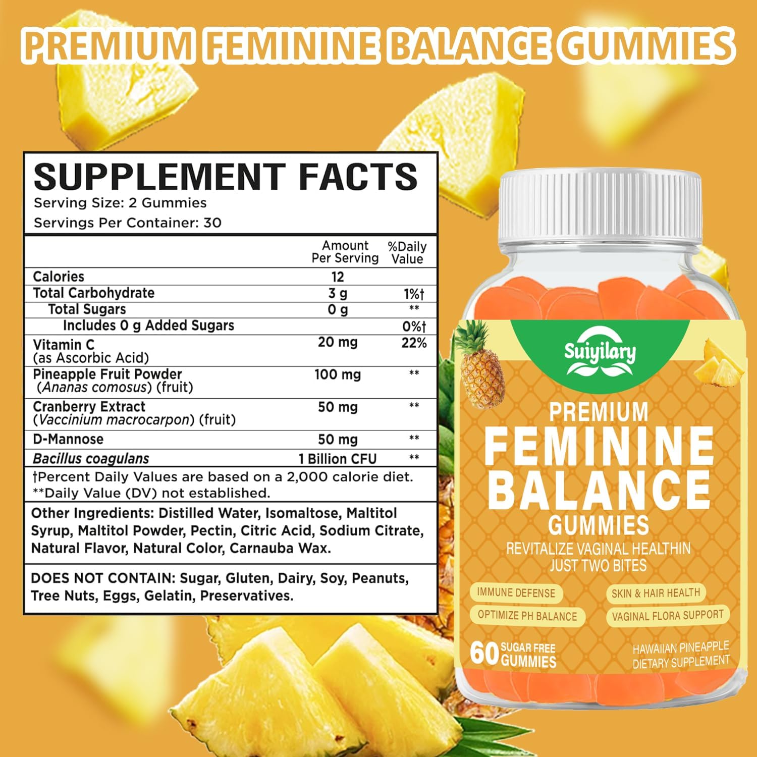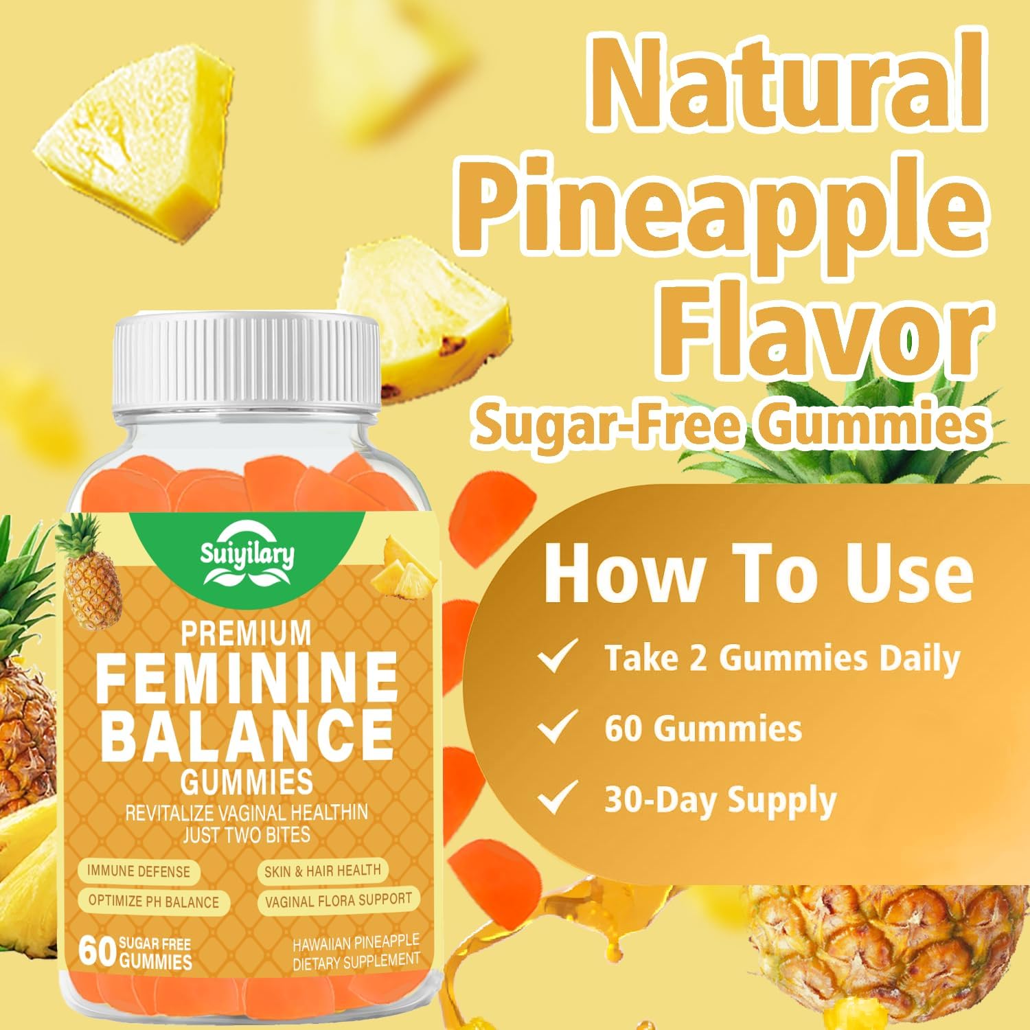 Delicious & Effortless Daily Support:Skip the hassle with these tasty pineapple-flavored gummies—just two a day is all you need! Perfect for busy women, they make feminine health simple, enjoyable, and convenient. A delicious way to nourish your body and support balance with every bite.