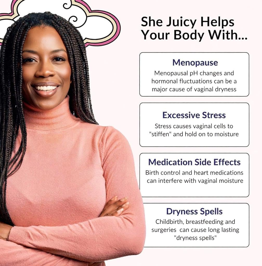 Flower Power She Juicy Gummies are a premium choice for feminine care, offering a simple and effective way to support vaginal health supplements from within. Made with slippery elm, these chewable gummies act as a natural vaginal moisturizer, helping relieve vaginal dryness, irritation, and discomfort that many women experience due to stress, hormonal changes, or medications. The power of slippery elm bark works to enhance vaginal wetness and hydration by supporting the vaginal lining internally, providing lasting comfort and confidence. Unlike oils, creams, or capsules that can feel sticky, messy, or inconvenient, these gummies deliver the same benefits in a tasty, easy-to-take form. With a refreshing mix berries and blueberry flavor, they make daily feminine care both enjoyable and discreet. Proudly vegan, sugar-free, and clean-formula, She Juicy Gummies are designed to give women a natural, gentle, and effective way to promote vaginal moisture and overall wellness without compromise.