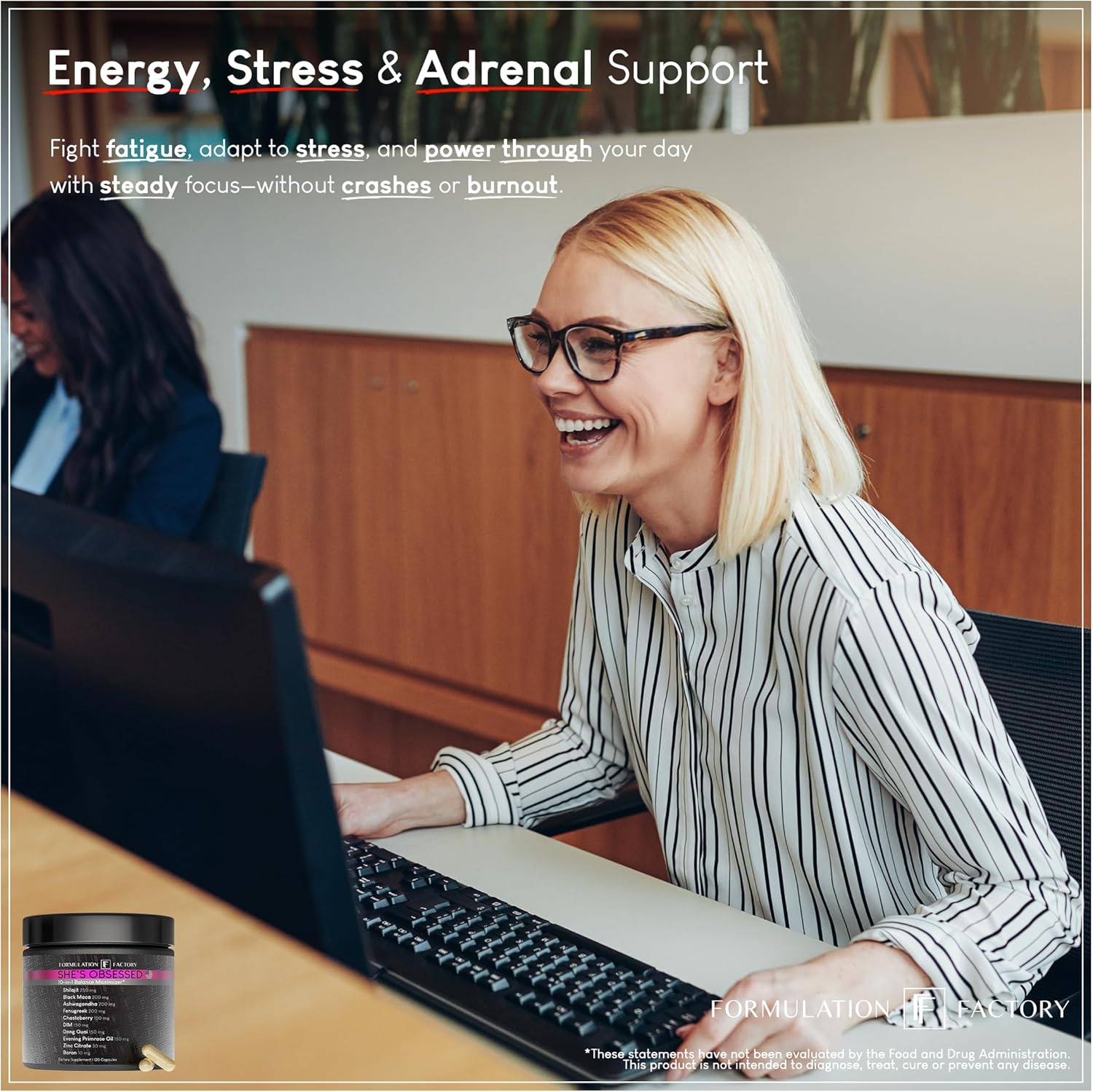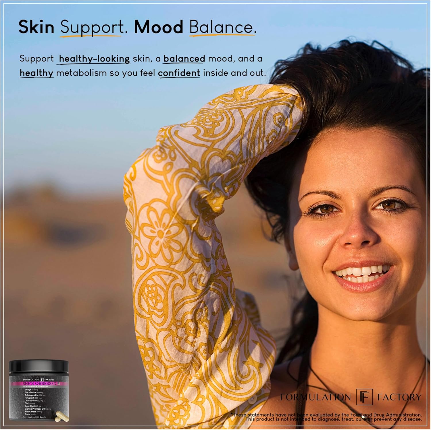 I’ve been using She’s Obsessed by Formulation Factory for just a few weeks now, and I can already feel a real difference in my energy, mood, and overall balance. I was struggling with fatigue, mood swings, and irregular cycles, but since starting this supplement, I feel more grounded and energized every day.The ingredients are impressive — I love that it includes Ashwagandha, Maca, Shilajit, and Chasteberry all in one formula. It saves me from having to take multiple pills, and the dosages are just right. My skin looks better, I feel less bloated, and even my sleep has improved.It’s definitely worth the price for the quality and convenience. I’m so glad I found this — I already reordered because I never want to run out. Highly recommend this to any woman looking for a natural way to support hormone balance and overall vitality!