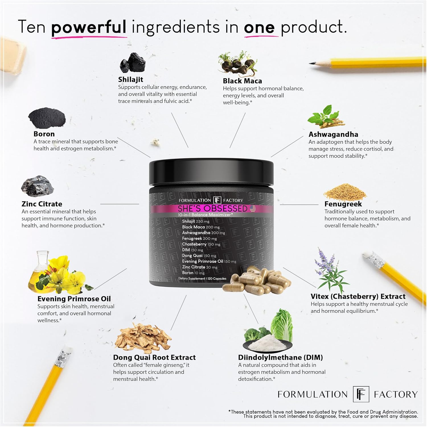 Formulation Factory She’s Obsessed: 10-in-1 Hormone Balance Maximizer with Shilajit, Maca, Ashwagandha, DIM, Dong Quai, Zinc & More for Vitality & Balance – 120 Capsules 2 Months