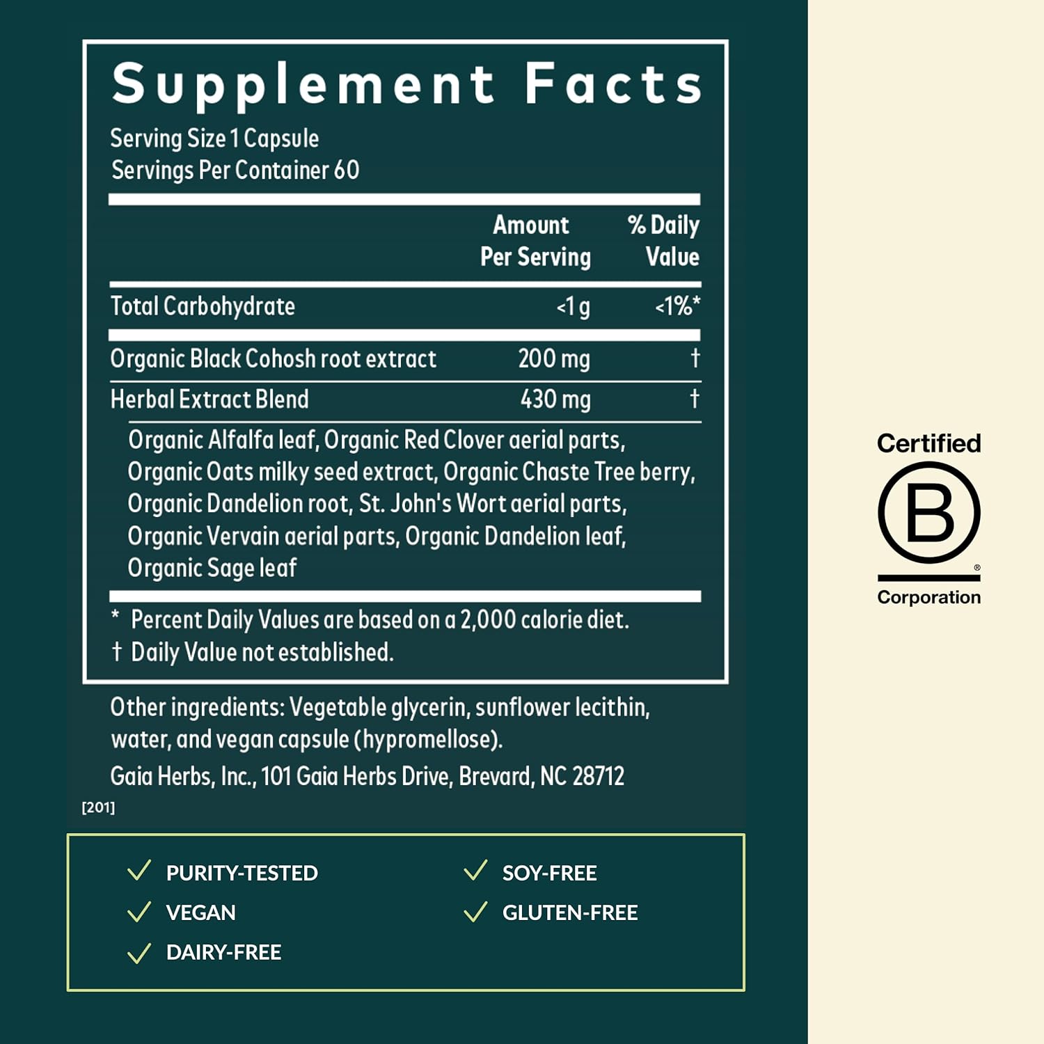 Herbal Formula: Formulated with black cohosh and vitex to provide full-spectrum support for symptoms related to menopause*