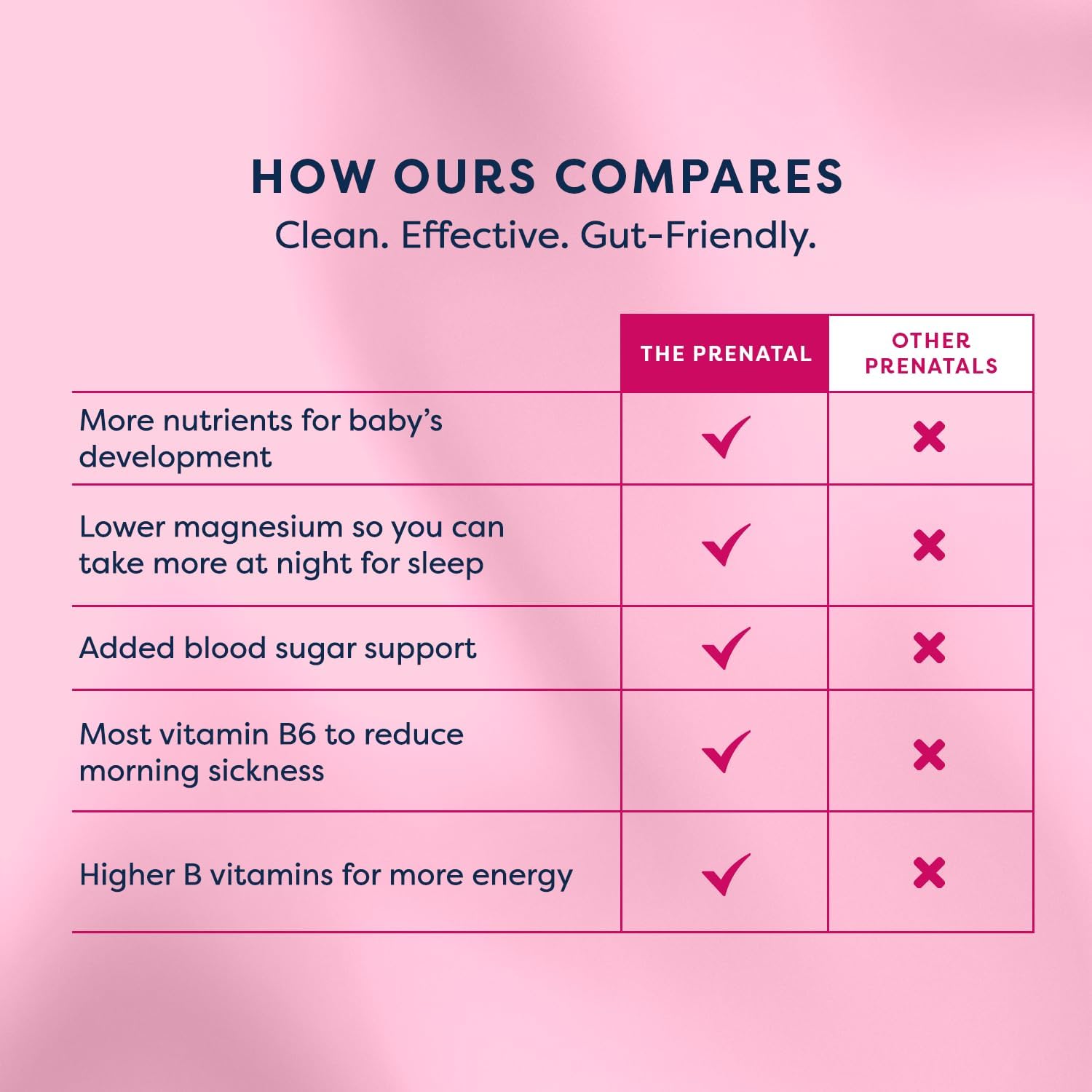Designed for both mom and baby, The Prenatal delivers an optimal blend of essential nutrients, including enhanced levels of folate and B12, promoting a healthy baby and providing sustained energy for the mother.