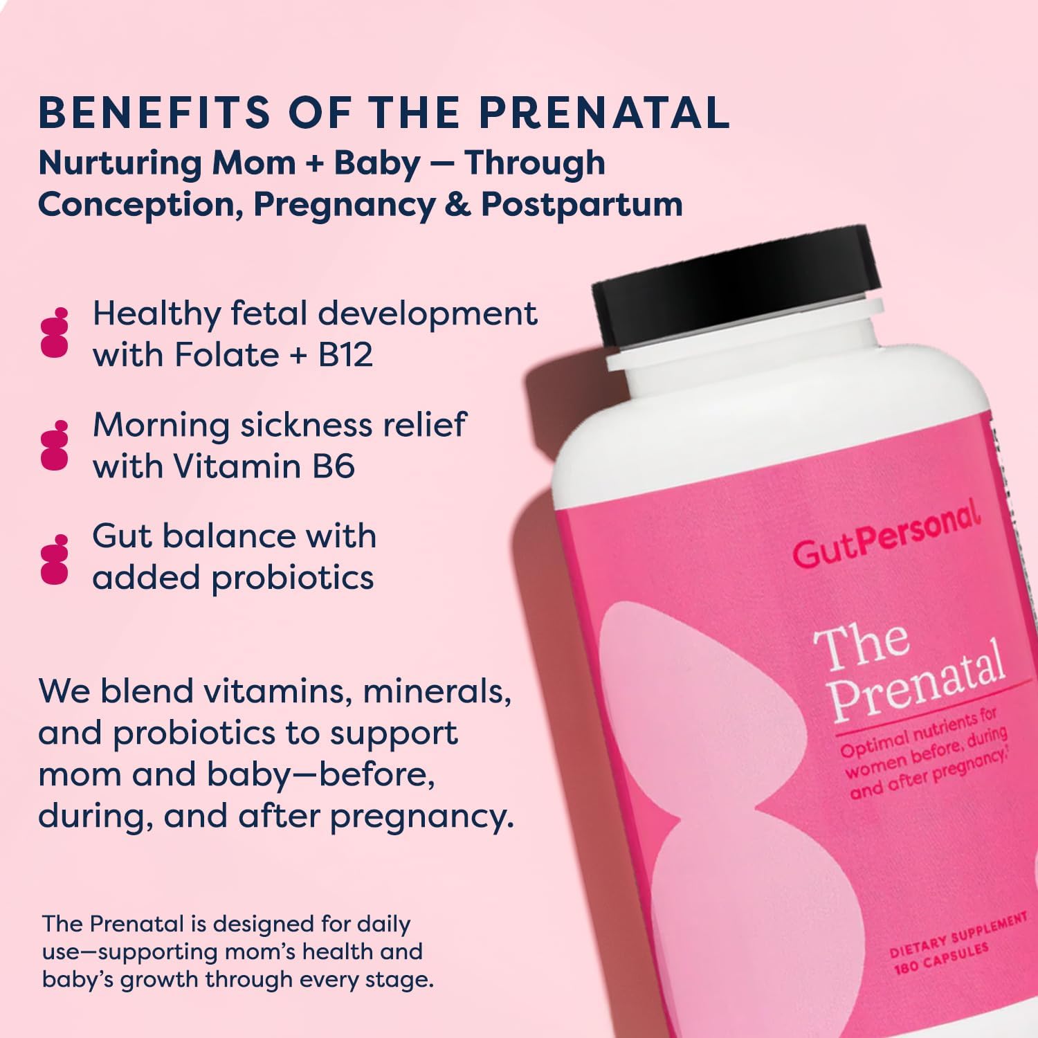Elevate your prenatal and postnatal experience with GutPersonal’s The Prenatal. It stands out as a high-quality and comprehensive multivitamin, carefully crafted to support preconception, pregnancy, and postpartum phases.