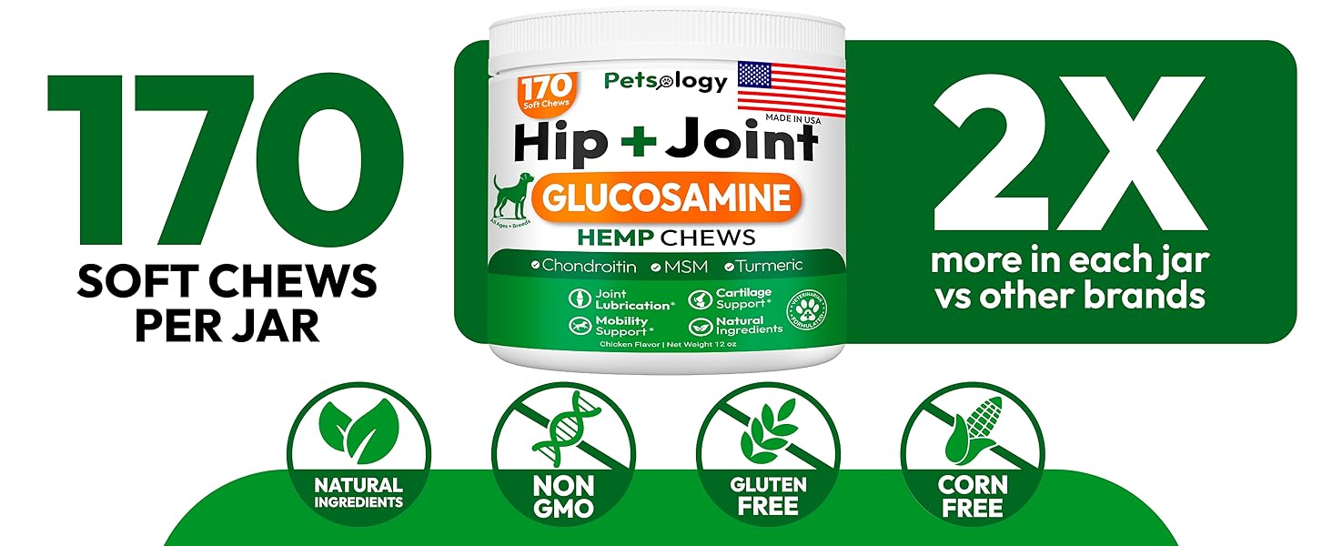 8 reviews for Hemp Hip and Joint Supplement for Dogs – Glucosamine for Dogs – 170 Mobility Support Chews – Advanced Joint Pain Relief Treats with Chondroitin, MSM, Turmeric – Large & Small Breeds – Made in USA