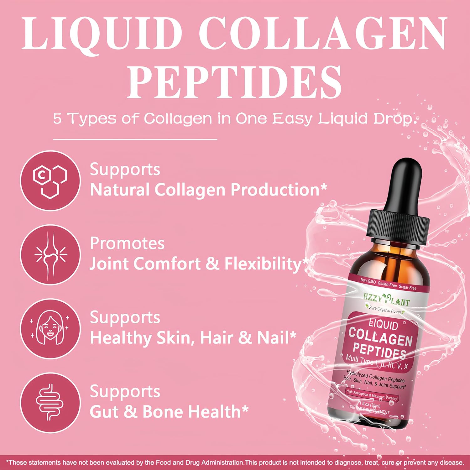 COMPLETE COLLAGEN SUPPORT FOR SKIN, JOINTS & HYDRATION: Our Hydrolyzed Collagen Peptides Liquid Drops deliver fast-absorbing Type I, II, III, V, X collagen, plus Hyaluronic Acid and Vitamin C, to support skin elasticity, joint mobility, and natural hydration.* These easy-to-take liquid collagen for women are formulated for maximum bioavailability—no pills, no hassle. Just clean, effective support for healthy aging and daily vitality—without added sugar, artificial colors, or preservatives.*