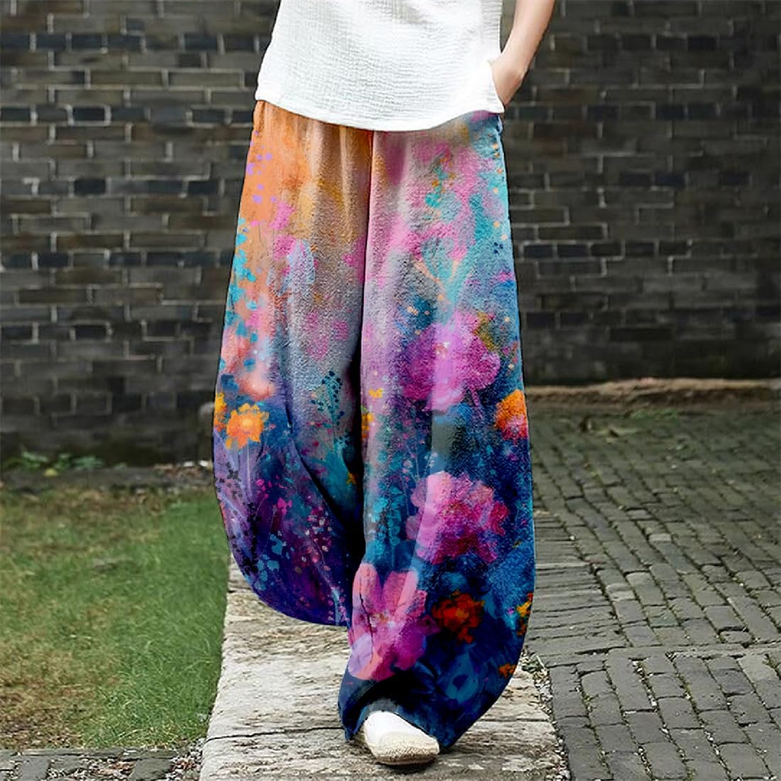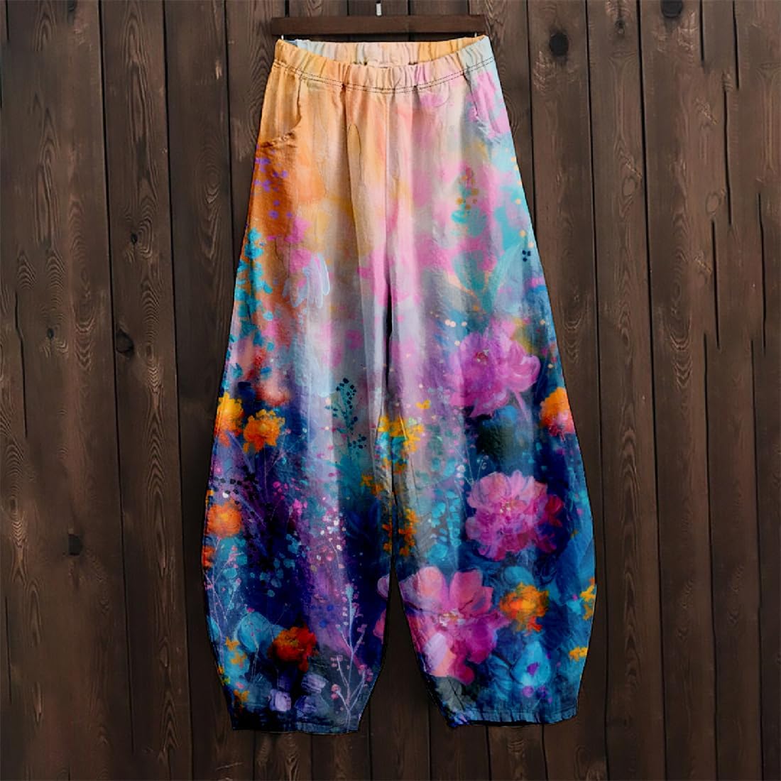 LOAIHA Women’s Baggy Pants with Elastic Waist Floral Wide Leg Casual Yoga Sweatpants Relax Fit Harem Lantern Trousers with Pockets