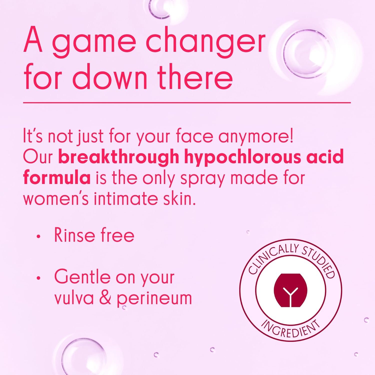 HYPOCHLOROUS TECHNOLOGY FOR WOMEN’S SKIN CARE: Intimate Skin Support Spray with FDA-cleared hypochlorous acid formula. Helps sweep away buildup that can cause odor, and soothes minor irritations. Gently cleanses intimate skin for daily freshness.