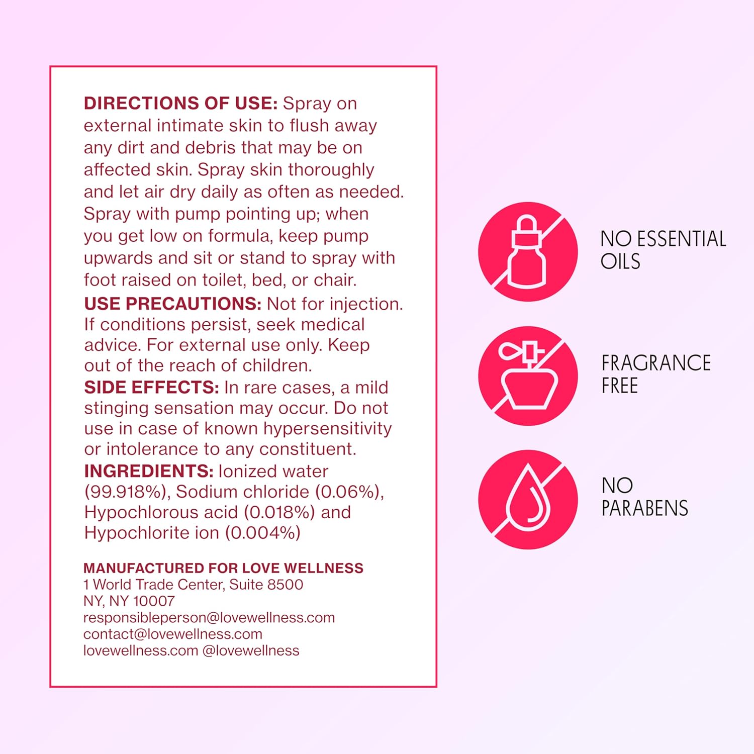 SUPPORTS THE NATURAL HEALING PROCESS WITHOUT HARSH CHEMICALS: Unlike traditional feminine hygiene products, this fragrance-free external intimate skin spray helps heal minor skin irritations like razor burn, providing a cooling sensation to the skin with every spray.