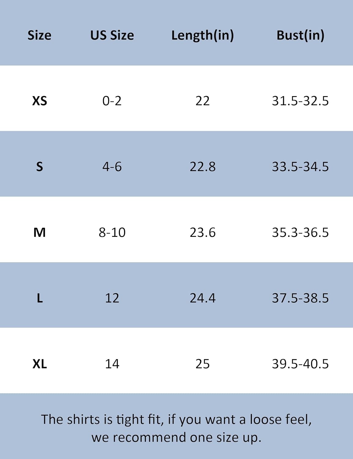 Buy this if you want a shirt sausage casing. I originally bought my recommended size M. I’m 5’ 8” and 155. Medium was so, so tight. I returned and purchased the Xl in yellow and salmon colors. I wanted close fitting tops for Pilates. The yellow is still very close fitting, but reasonable. The salmon is about a half to full size smaller and unwearable. If you’re young and have no squishy-ness, this shirt may work for you. If you have any fat under your skin, you will look like a stuffed sausage. The quality is good. Love the color choices. Wish there were some bigger sizes.
