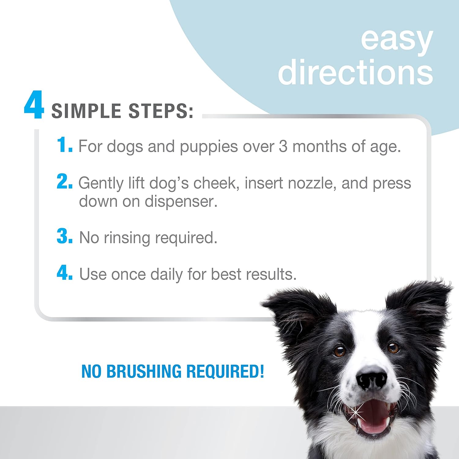 EASY TO USE – Gently lift dog’s cheek, insert nozzle, and press down on dispenser; use dog bad breath eliminator daily