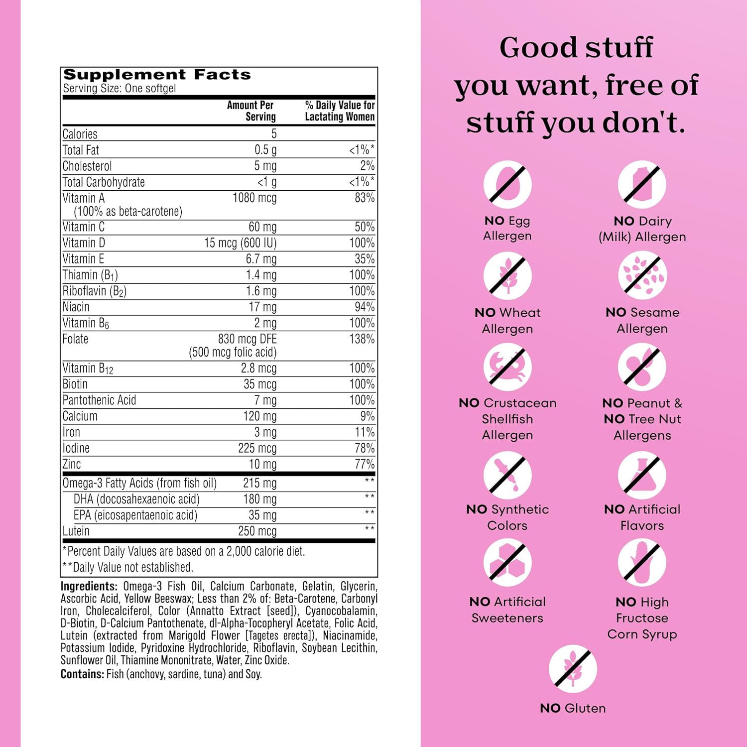 With key essential vitamins and minerals to support mom’s energy and immunity, and with omega-3 DHA to support baby’s brain and eye development.