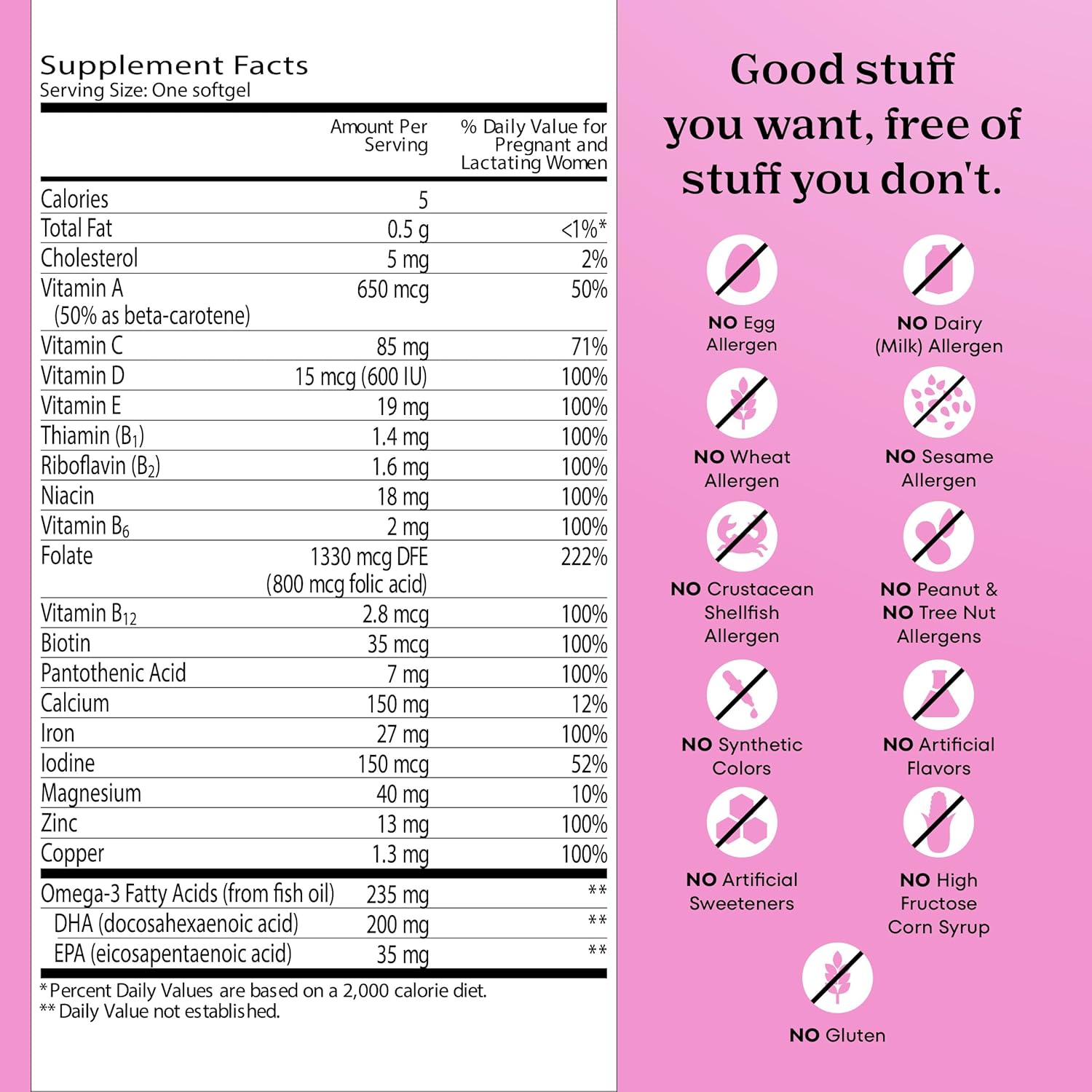 With good stuff for you and baby: This prenatal multivitamin for women with iron are made without Dairy (Milk) Allergen, Gluten, Artificial Sweeteners, Artificial Flavors, High Fructose Corn Syrup, Synthetic colors. With key nutrients for your body and your baby