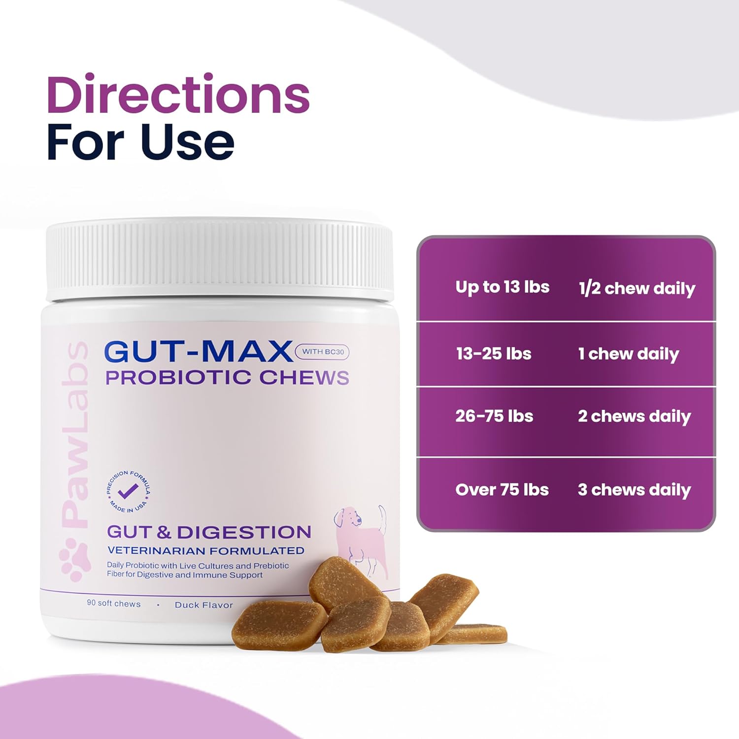 8 reviews for PAWLABS Gut Max Probiotic Chews – Natural, Vet Formulated Digestive & Immune Support – Relieves Diarrhea, Constipation – with Patented BC30™ Bacillus Coagulans – Duck Flavor – 90 Soft Chews