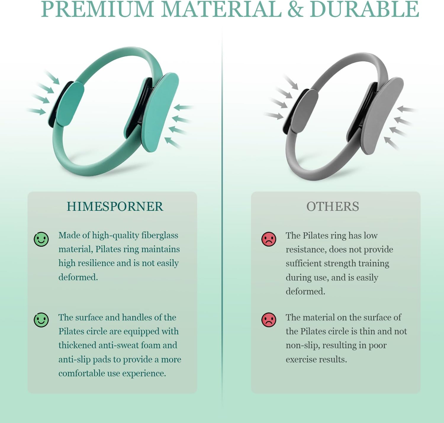 【Pilates Ring and Ball】: 12 inch Pilates Ring is made of high-quality elastic fiberglass, covered with comfortable sweat-proof sponge, and the handles are equipped with thick foam pads. 9 inch Pilates ball is non-slip and durable, and comes with a straw for easy inflating. They can effectively help you complete most Pilates movements and strengthen your core and whole-body muscles