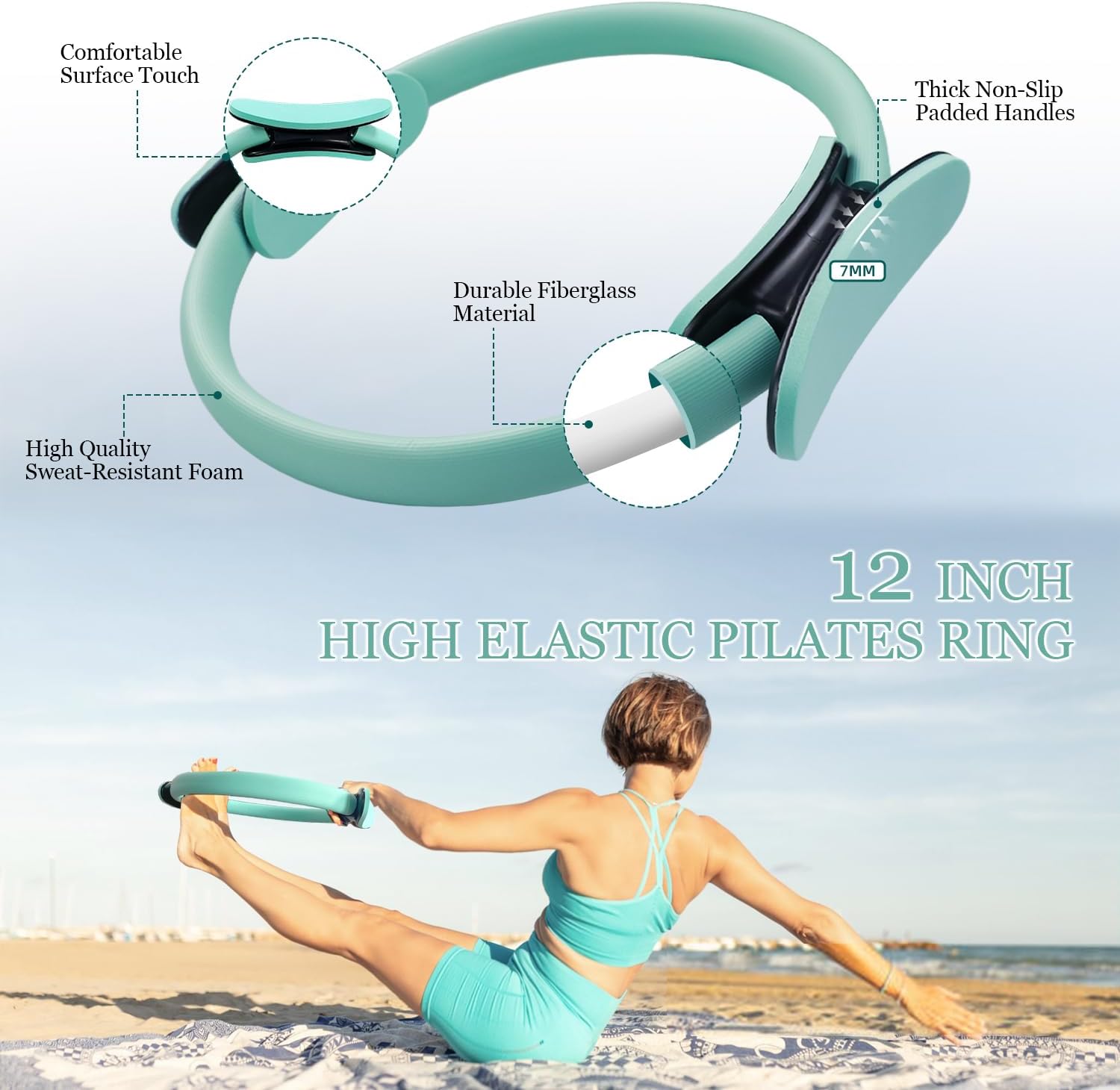 I’ve been wanting to add more strength and flexibility training to my routine, but I didn’t want to commit to an expensive gym membership or invest in bulky equipment. This pilates kit turned out to be the perfect solution. It has everything I need to get a full-body workout right at home — a pilates ring, resistance bands, a small exercise ball, dumbbells, and even a handy storage bag to keep everything organized.The quality really surprised me. The fabric resistance bands are sturdy, comfortable, and don’t roll or pinch like the thinner rubber ones I’ve used before. The ring has a nice tension to it and adds a good challenge, especially for core and thigh exercises. The dumbbells are lightweight but effective for higher-rep movements, and I like that they have a non-slip grip.I’ll admit, inflating the little ball was a bit awkward at first, but once it’s ready, it’s actually great for balance and stability exercises. The included exercise guide is a nice bonus, but I’ve been following free Pilates videos online and everything in the kit works perfectly with those workouts.If you’re short on space or just starting out, this set is a fantastic option. It’s compact, beginner-friendly, and versatile enough to grow with you as you get stronger. Plus, the teal color I picked looks great — a small detail, but it makes me happy to use it. Highly recommend it for anyone wanting an affordable way to get into pilates or add more variety to their fitness routine!