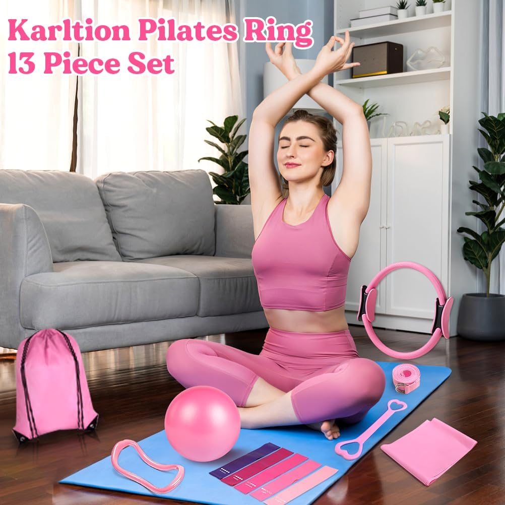 The Pilates Ring 13-Piece Set in Purple is an excellent all-in-one package for women who want to enhance their home workout routine. The magic circle with padded handles is comfortable to grip and perfect for toning arms, legs, and thighs.The set includes a workout ball, resistance bands, a guide, and a carrying bag — making it easy to follow exercises and store everything neatly. The quality of each piece feels durable, and the resistance levels are great for both beginners and more experienced users.The purple color adds a fun, vibrant touch, and the variety of accessories ensures you can target multiple muscle groups without needing extra equipment.Overall, this Pilates kit is a practical, well-designed set that makes at-home fitness simple, effective, and enjoyable.