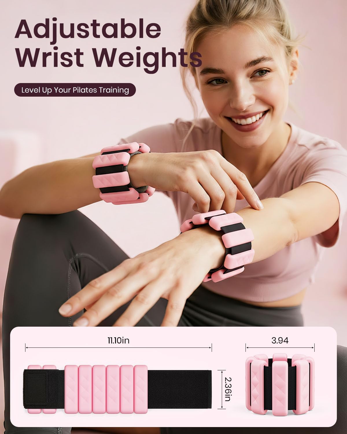 [Adjustable Weights]: 2 1-pound weights with soft silicone wrapping steel—anti-slip, waterproof, and skin-friendly. Add resistance to boost workout efficiency and support fitness progress.