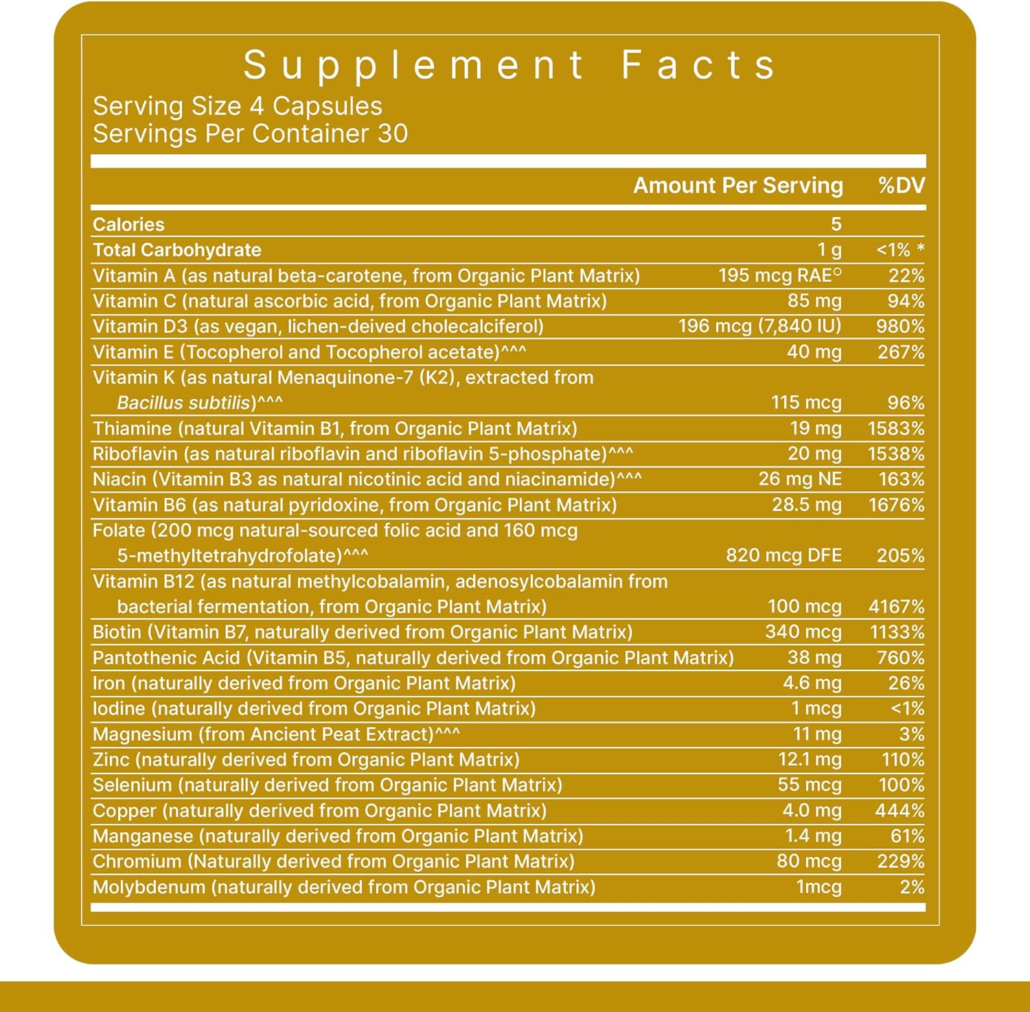 HIGH-POTENCY MULTIVITAMINS: Gluten-free, synthetic-free, and rich in phytonutrients for adults, men and women. Boost your cardiovascular and immune system naturally