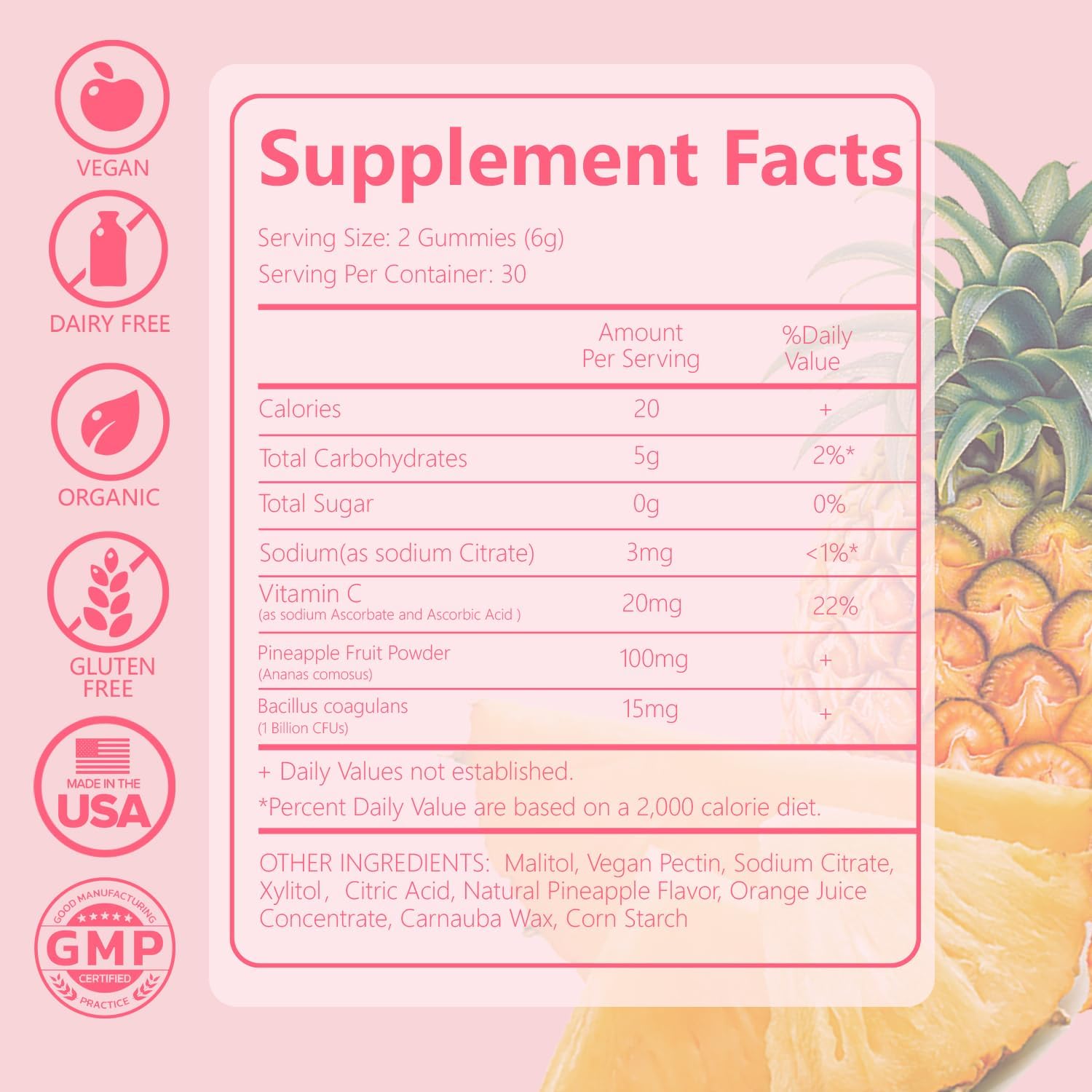 I’m so impressed with the Pineapple Gummy Vaginal Probiotics for Women! These gummies have been a total game changer for my intimate health and overall well-being. You smell pineapples soon as you open the jar. All natural ingredients.🍍 What I Love:Taste: First off, the pineapple flavor is absolutely delicious! It’s like a tropical treat that I actually look forward to taking every day. No weird aftertaste just pure, fruity goodness!Vaginal Health: Since I started taking these probiotics, I’ve noticed a significant improvement in my intimate health. The gummies help maintain the right balance down there, which has made me feel fresher and more confident.Gentle & Effective: They’ve helped me maintain a healthy balance of good bacteria, which is essential for vaginal health. I’ve noticed fewer discomforts like dryness or irritation, and my overall feminine health has improved.Convenience: These gummies are so easy to incorporate into my daily routine no pills, no hassle. And I love that they’re formulated specifically for women’s needs