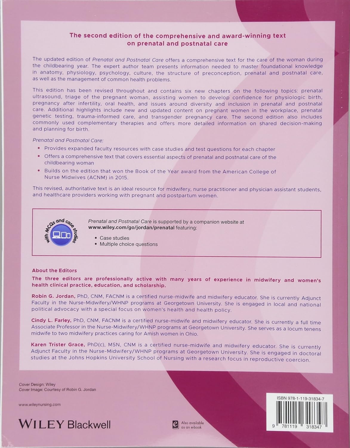 The updated edition of Prenatal and Postnatal Care offers a comprehensive text for the care of the woman during the childbearing year. The expert author team presents information needed to master foundational knowledge in anatomy, physiology, psychology, culture, the structure of preconception, prenatal and postnatal care, as well as the management of common health problems.