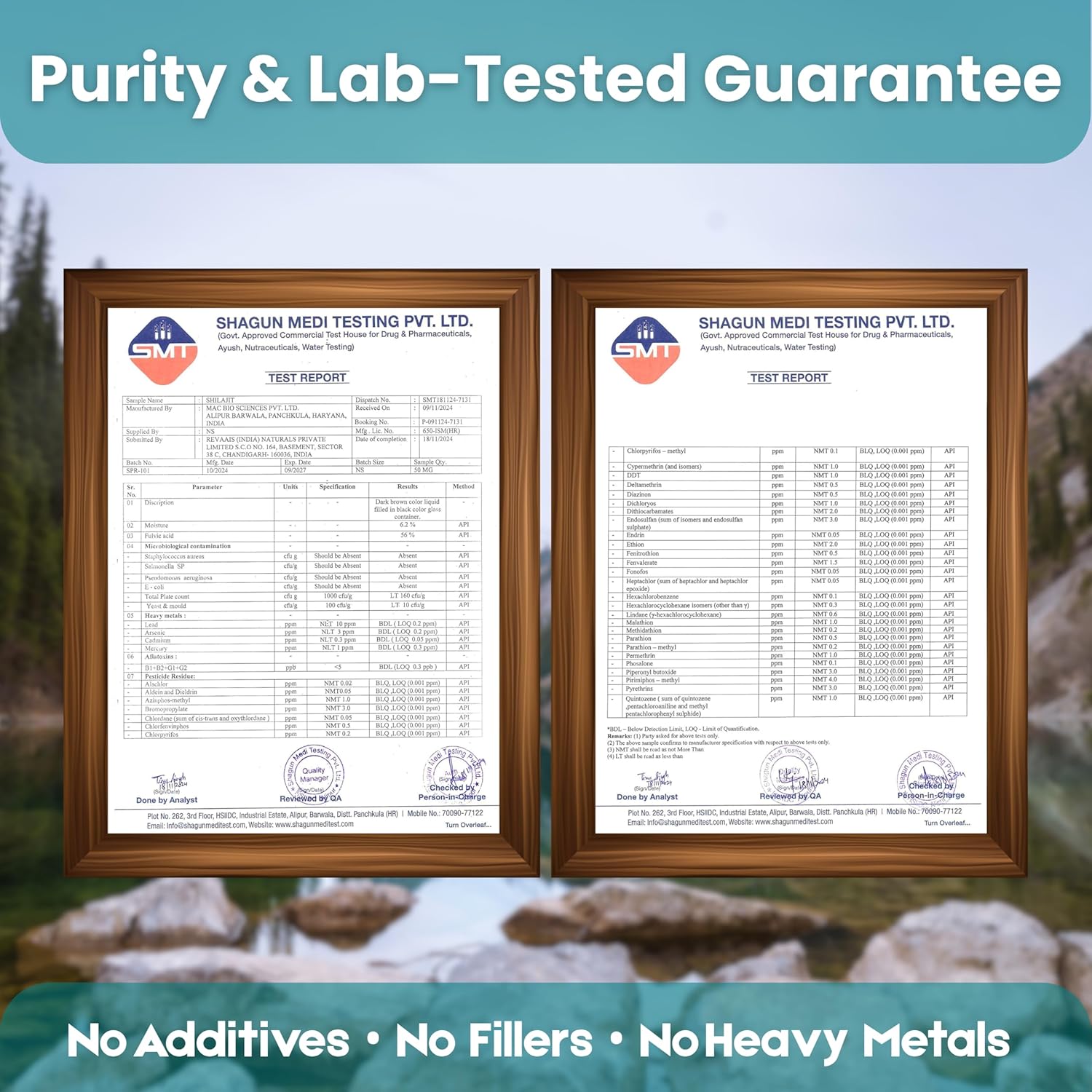 LAB TESTED & FREE FROM ADDITIVES – At Exotic Veda, your health and safety come first, which is why our Shilajit resin undergoes rigorous third-party lab testing to guarantee purity, potency, and authenticity. Each batch is carefully screened to ensure it is completely free from heavy metals, harmful toxins, fillers, or artificial additives. Unlike many inferior alternatives that compromise quality with chemical processing, our Shilajit retains its natural integrity, offering you a clean and unadulterated source of minerals and fulvic acid. Safe for daily use and long-term wellness, it allows you to enjoy the maximum benefits of pure Himalayan Shilajit with complete peace of mind.