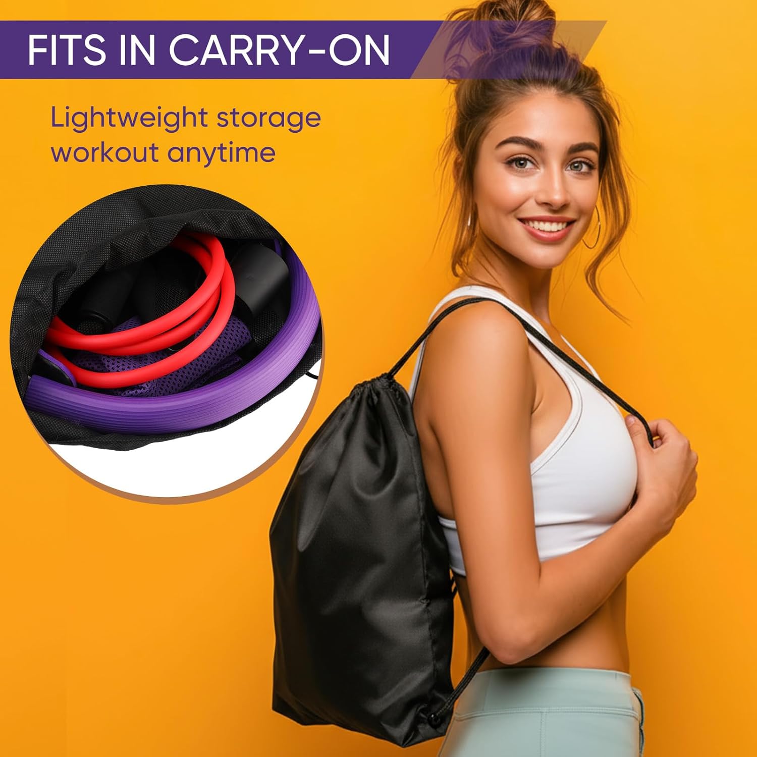 Portable, compact and easy to get started: This home Pilates set comes with a fitness bag, allowing you to pack the entire Pilates system inside, making it convenient to carry, suitable for outdoor workouts, weekend getaways, or use in a physical therapy office