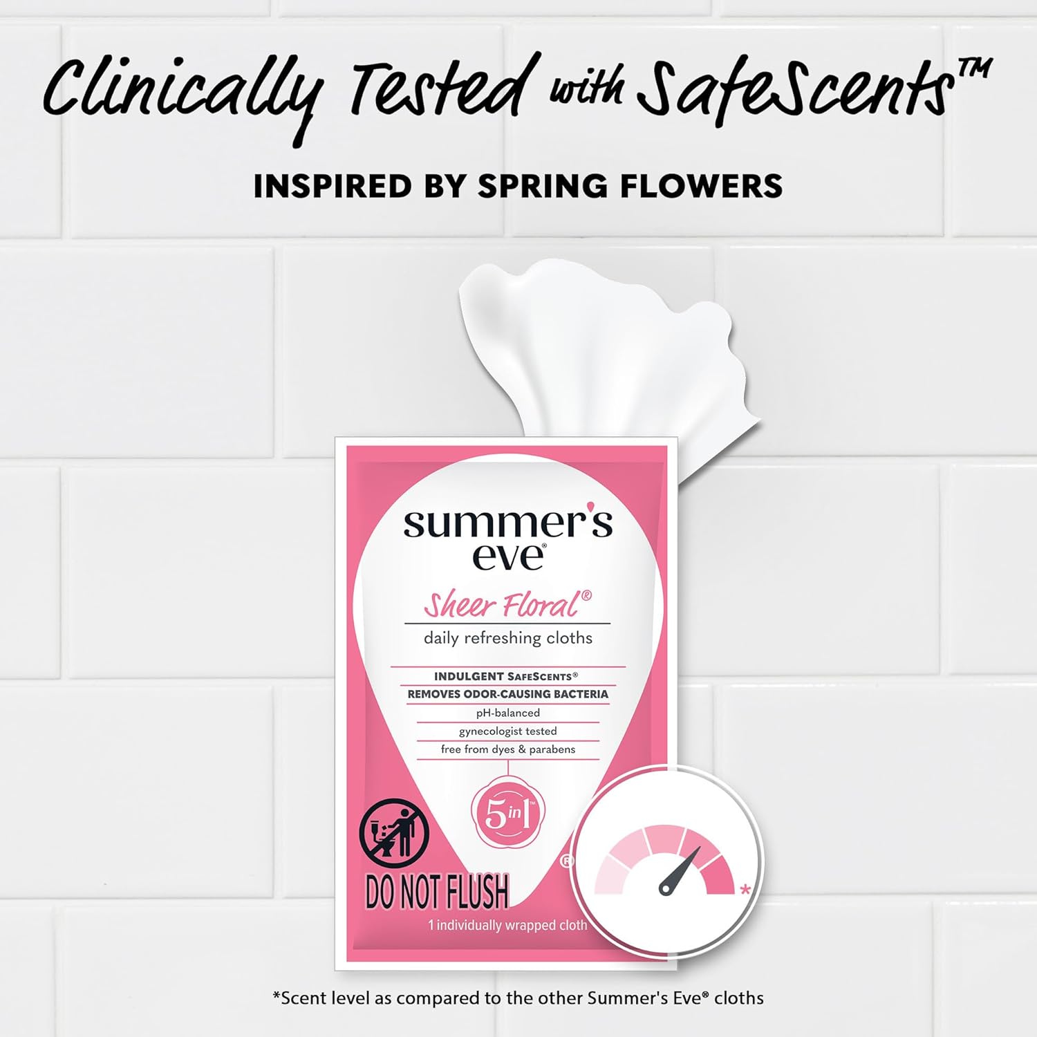 12 reviews for Summer’s Eve Sheer Floral Feminine Wipes, Gentle pH-Balanced Formula Helps Control Vaginal Odor, Individually Wrapped Wipes, 12 Count