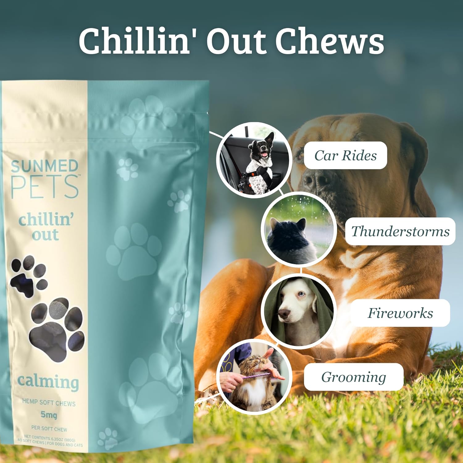 8 reviews for Sunmed Chillin’ Out Hemp Dog Chews with Chamomile & L-Tryptophan – Stress Relief, Calming & Relaxation for Dogs – Helps with Anxiety & Stressful Situations – 40 Count
