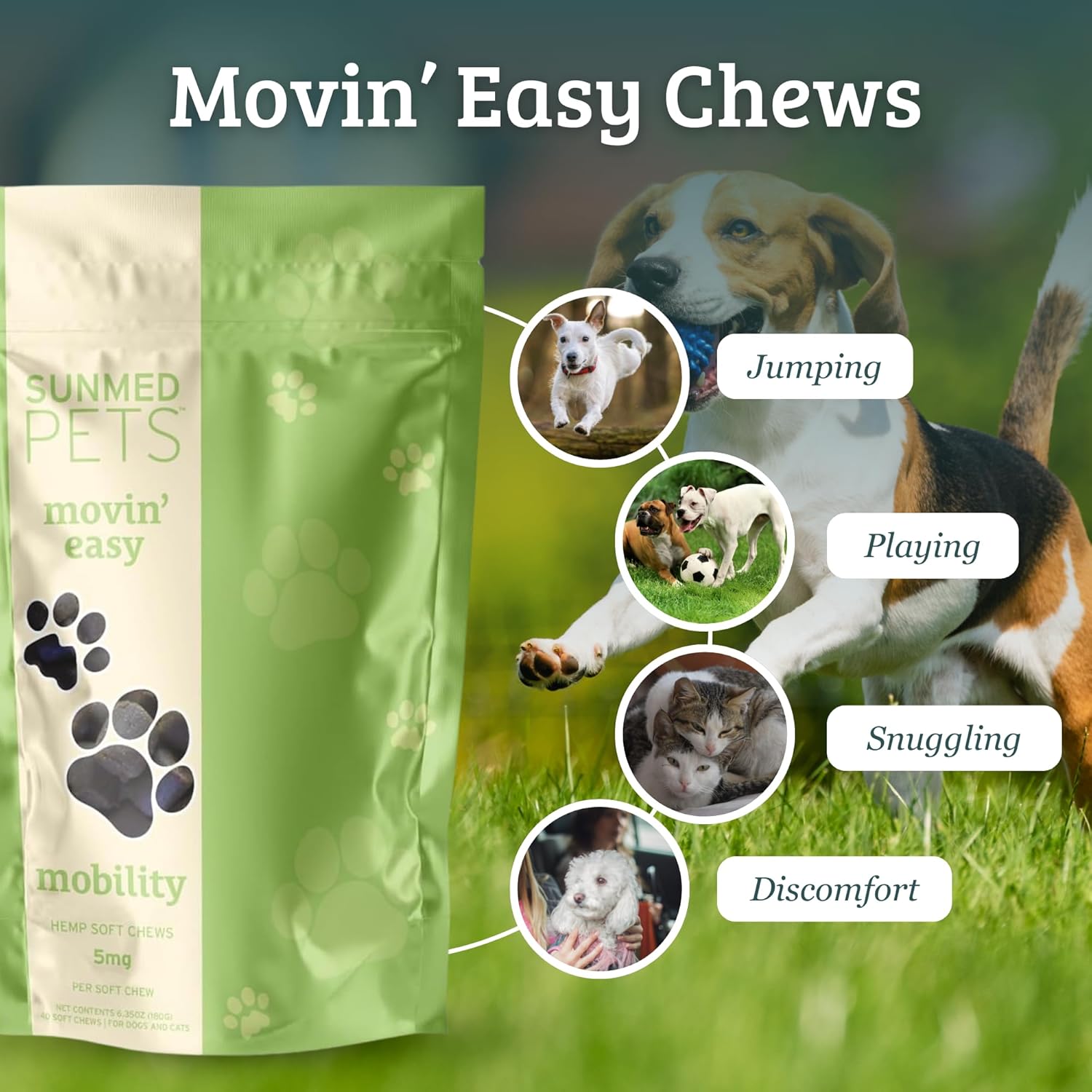 8 reviews for Sunmed Movin’ Easy Hemp Pet Chews for Joint Health & Mobility – Omega-3, Green Lipped Mussels, 5mg Hemp Extract – Supports Flexibility & Comfort | Beef Liver & Sweet Potato, 40 Count
