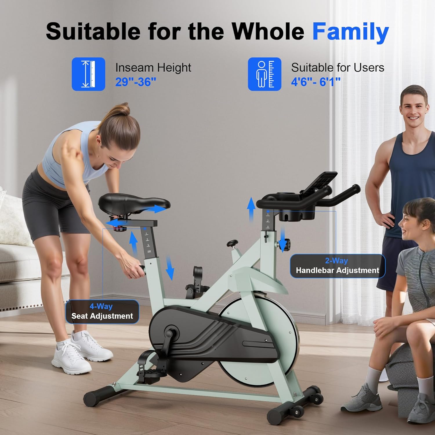 【Easy to Assemble】The design of this spin bike is very easy to assemble and it can be installed in no more than 20 minutes. It is equipped with built-in wheels at the bottom and can be easily moved from one room to another. Whether you have a dedicated fitness area or need to store after each use, this bicycle is the best choice