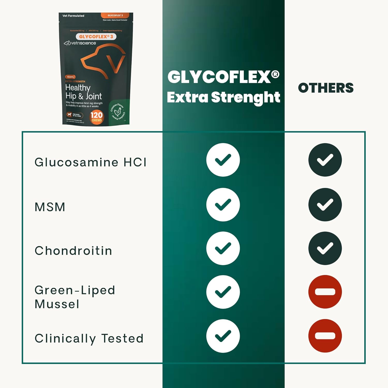 11 reviews for VetriScience Extra Strength Healthy Hip & Joint Chews, GlycoFlex 3, Glucosamine, Green-Lipped Mussel, Joint Support Supplement for Dogs, Promote Mobility & Soothe Joint Discomfort, Chicken, 120 Count