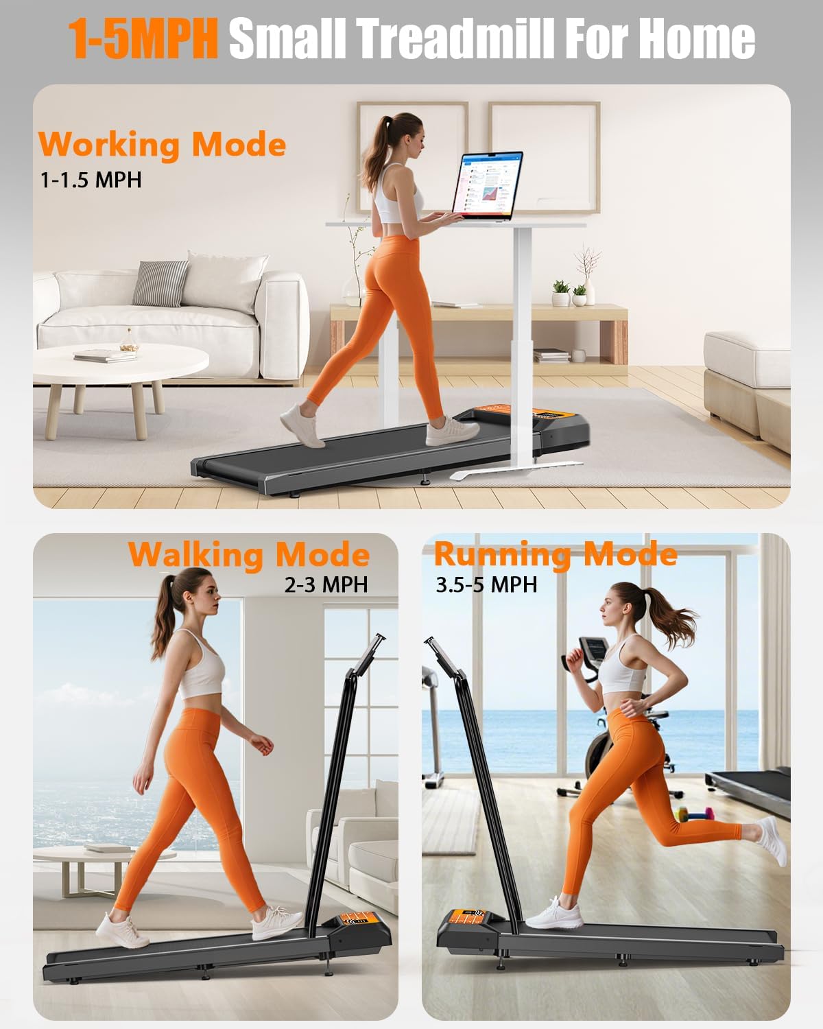 This treadmill is compact, quiet, and easy to use. I love the 2-in-1 design for both walking and jogging. Great quality and value for the price!