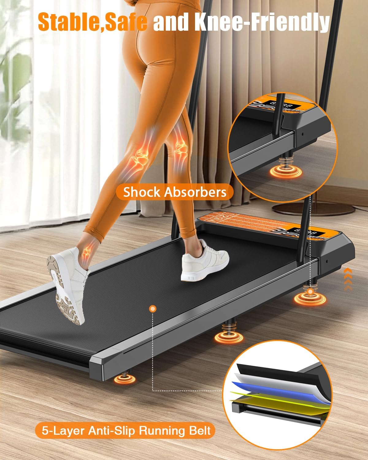 【Wider Running Belt and Shock-Absorbing Design】The small treadmills for home are equipped with a spacious 15*35.4-inch running area, which has enough space to satisfy you. It is also equipped with a 5-layer non-slip running belt, silicone shock absorbers and soft rubber pads to help reduce impact and noise, making your running quieter and more stable, ensuring your knees, muscles and joints are protected while running