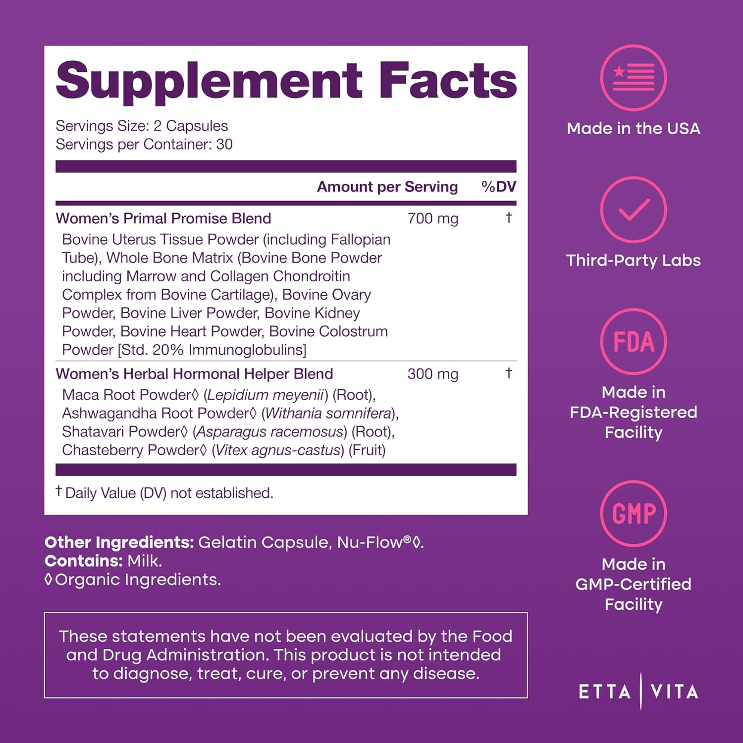 [Comprehensive Female Wellness Formula] – A targeted blend of primal bovine ovary, uterus, liver, kidney, and heart, combined with time-tested herbs for a complete women’s wellness support in just one capsule.