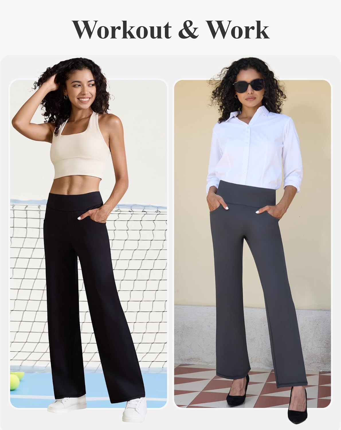 8 reviews for Yoga Pants with Pockets for Women, High Waist Tummy Control Bootcut Flare Leggings Workout Work Pants